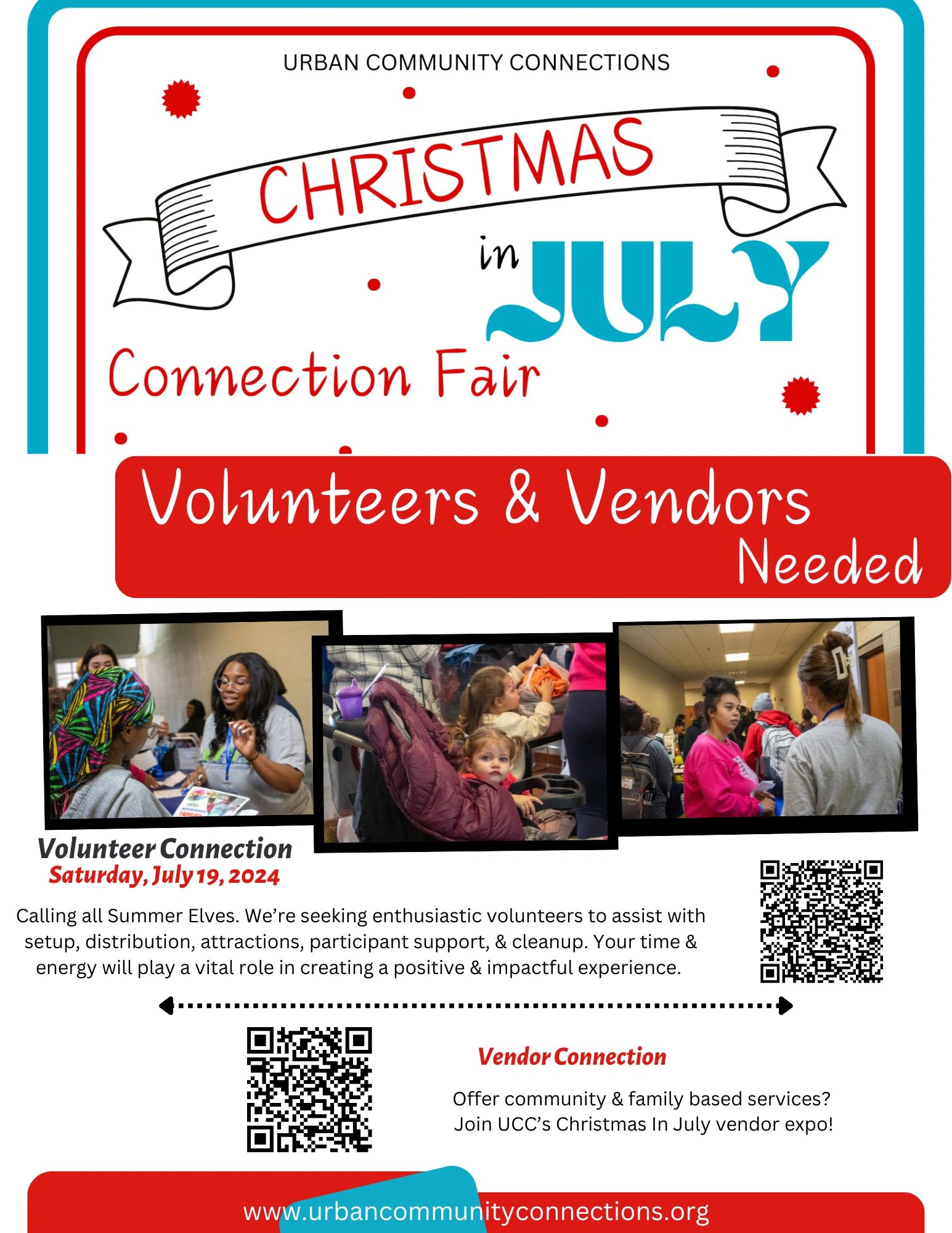 Christmas in July (Saturday, July 19th): https://urbancommunityconnections.breezechms.com/form/6ca9ef5971880